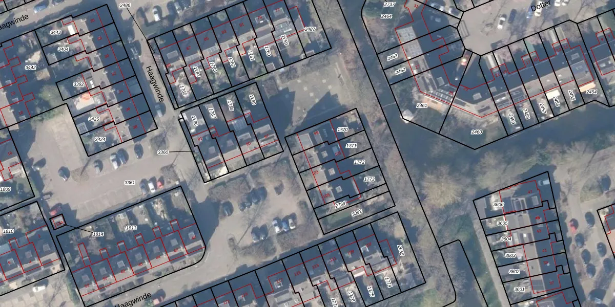 Gebruik de zoekbalk of klik op een perceel voor informatie over de adressen binnen dit perceel.