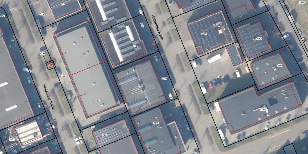 Het perceel waarop Hollandse Kade 25-A staat heeft een oppervlakte van 1100 m². Dit is een zeer groot perceel. De perceeloppervlakte wordt geregistreerd door het Kadaster. Gedetailleerde informatie over de maten van dit perceel kunt u vinden in het rapport Kadastrale kaart met maatvoering van Hollandse Kade 25-A.
