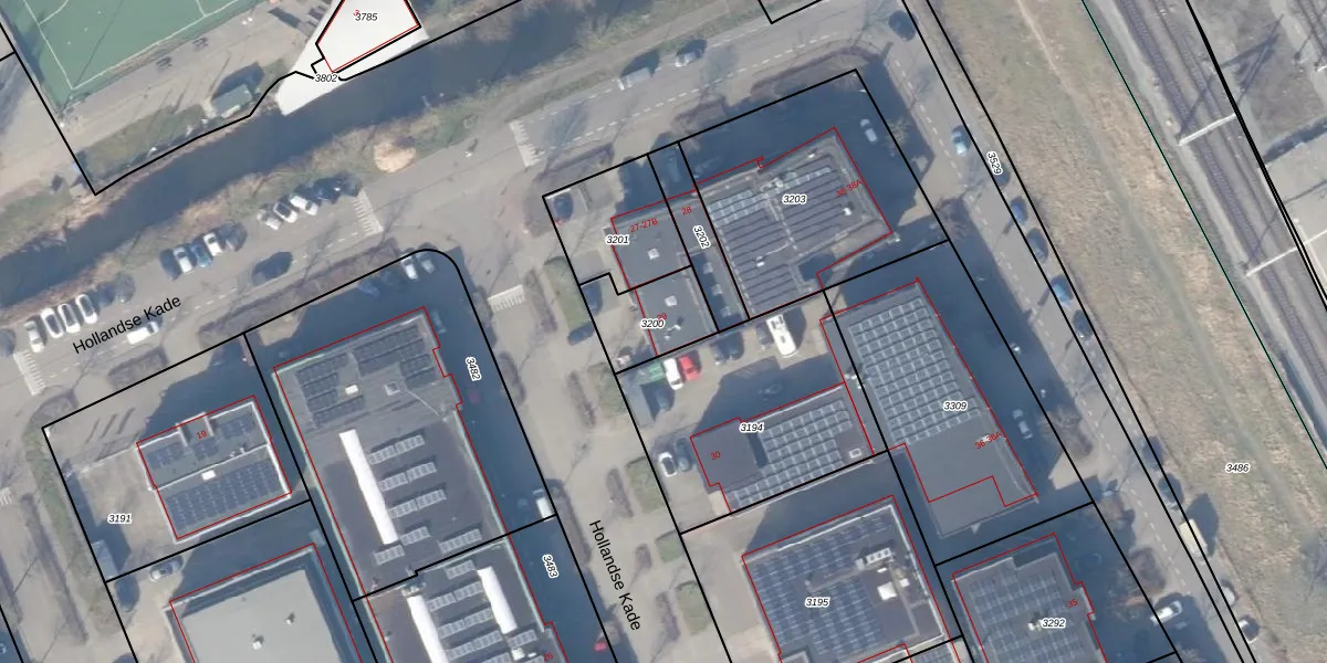 Het perceel waarop Hollandse Kade 28 staat heeft een oppervlakte van 204 m². Dit is een middelgroot perceel. De perceeloppervlakte wordt geregistreerd door het Kadaster. Gedetailleerde informatie over de maten van dit perceel kunt u vinden in het rapport Kadastrale kaart met maatvoering van Hollandse Kade 28.