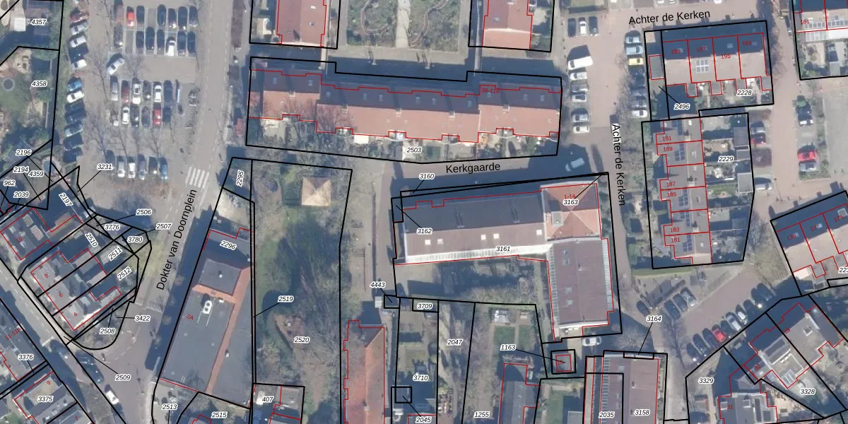Het perceel waarop Kerkgaarde 1 staat heeft een oppervlakte van 1575 m². Dit is een zeer groot perceel. De perceeloppervlakte wordt geregistreerd door het Kadaster. Gedetailleerde informatie over de maten van dit perceel kunt u vinden in het rapport Kadastrale kaart met maatvoering van Kerkgaarde 1.