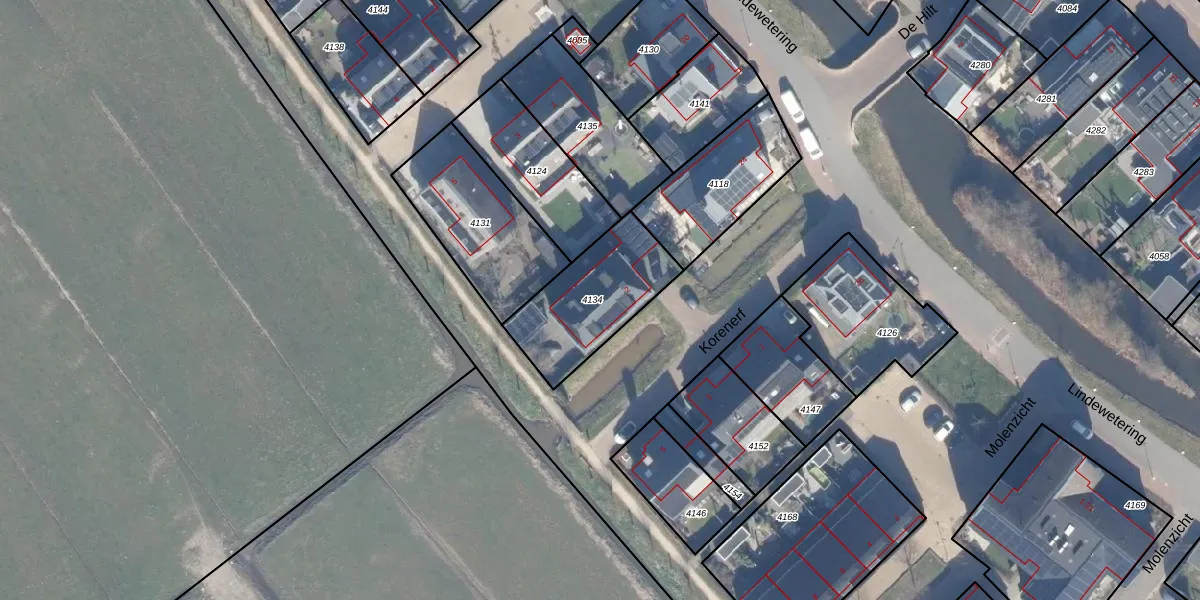 Het perceel waarop Korenerf 2 staat heeft een oppervlakte van 394 m². Dit is een groot perceel. De perceeloppervlakte wordt geregistreerd door het Kadaster. Gedetailleerde informatie over de maten van dit perceel kunt u vinden in het rapport Kadastrale kaart met maatvoering van Korenerf 2.