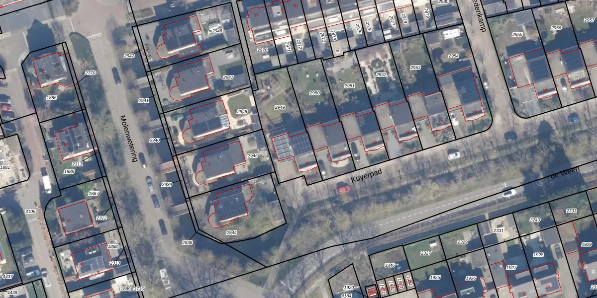 Kuyerpad 21 is gelegen op kadastraal perceel ACD00A2949. Deze kadastrale aanduiding is uniek en wordt gebruikt door het Kadaster om eigendomsrechten en andere zakelijke rechten vast te leggen. Het perceel maakt onderdeel uit van de kadastrale gemeente Abcoude.