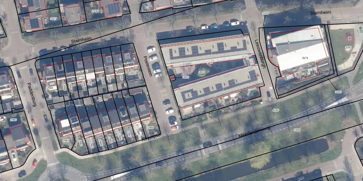 Het perceel waarop Leeuwenburgh 12 staat heeft een oppervlakte van 2025 m². Dit is een zeer groot perceel. De perceeloppervlakte wordt geregistreerd door het Kadaster. Gedetailleerde informatie over de maten van dit perceel kunt u vinden in het rapport Kadastrale kaart met maatvoering van Leeuwenburgh 12.