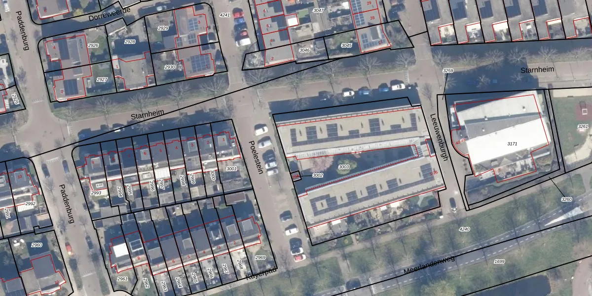 Het perceel waarop Leeuwenburgh 15 staat heeft een oppervlakte van 2025 m². Dit is een zeer groot perceel. De perceeloppervlakte wordt geregistreerd door het Kadaster. Gedetailleerde informatie over de maten van dit perceel kunt u vinden in het rapport Kadastrale kaart met maatvoering van Leeuwenburgh 15.