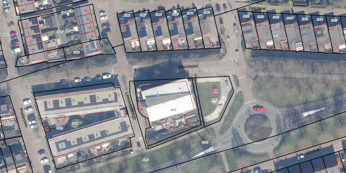 Het perceel waarop Leeuwenburgh 45 staat heeft een oppervlakte van 1077 m². Dit is een zeer groot perceel. De perceeloppervlakte wordt geregistreerd door het Kadaster. Gedetailleerde informatie over de maten van dit perceel kunt u vinden in het rapport Kadastrale kaart met maatvoering van Leeuwenburgh 45.