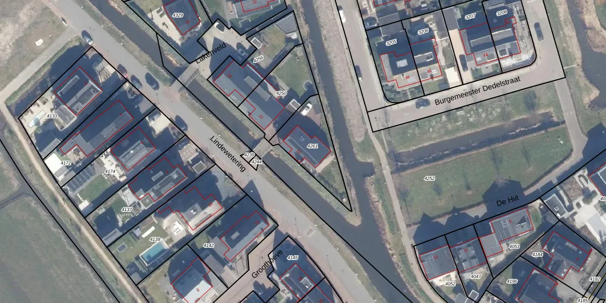 Het perceel waarop Lindewetering 13 staat heeft een oppervlakte van 406 m². Dit is een groot perceel. De perceeloppervlakte wordt geregistreerd door het Kadaster. Gedetailleerde informatie over de maten van dit perceel kunt u vinden in het rapport Kadastrale kaart met maatvoering van Lindewetering 13.