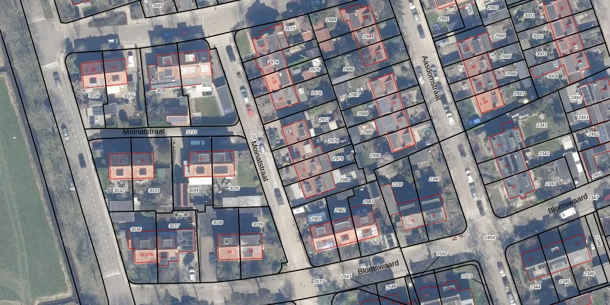 Gebruik de zoekbalk of klik op een perceel voor informatie over de adressen binnen dit perceel.