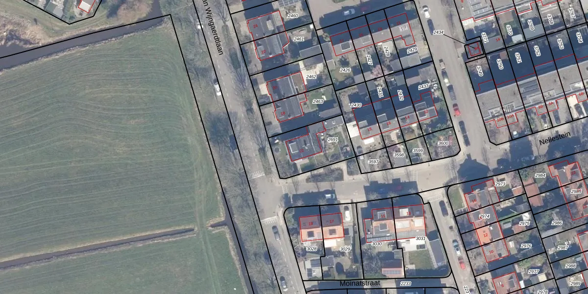 Gebruik de zoekbalk of klik op een perceel voor informatie over de adressen binnen dit perceel.