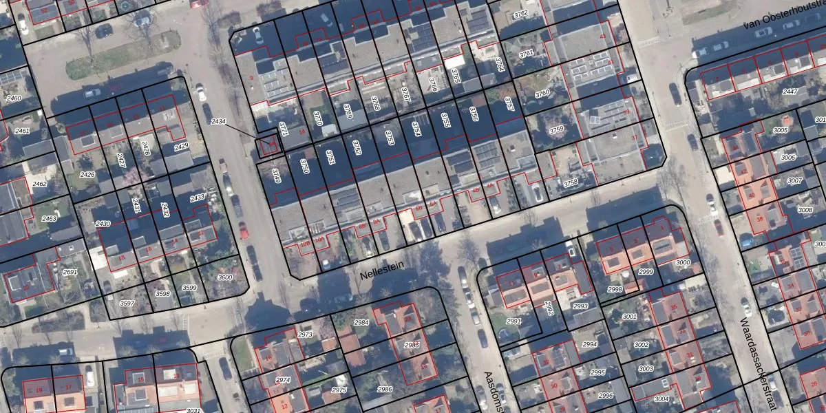 Gebruik de zoekbalk of klik op een perceel voor informatie over de adressen binnen dit perceel.