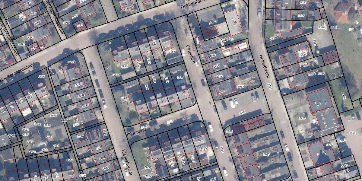 Gebruik de zoekbalk of klik op een perceel voor informatie over de adressen binnen dit perceel.