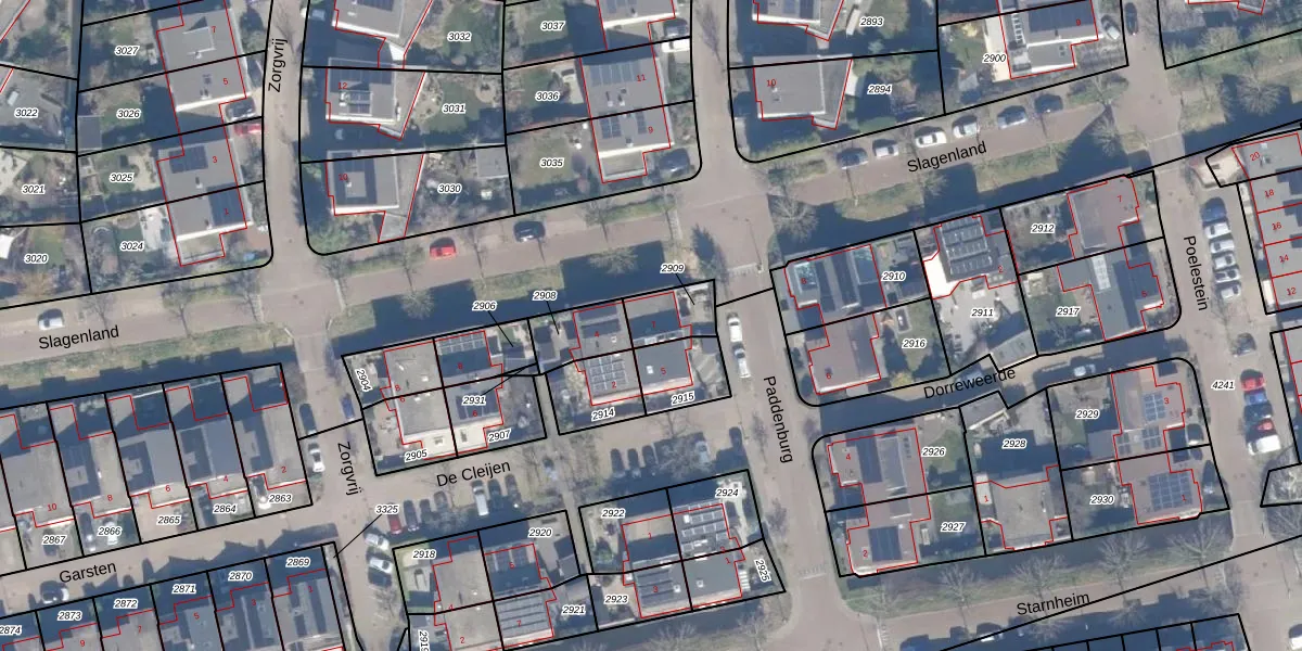 Gebruik de zoekbalk of klik op een perceel voor informatie over de adressen binnen dit perceel.