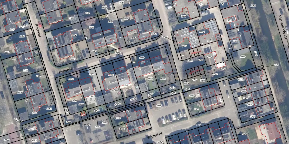 Het perceel waarop Papehof 27 staat heeft een oppervlakte van 334 m². Dit is een groot perceel. De perceeloppervlakte wordt geregistreerd door het Kadaster. Gedetailleerde informatie over de maten van dit perceel kunt u vinden in het rapport Kadastrale kaart met maatvoering van Papehof 27.