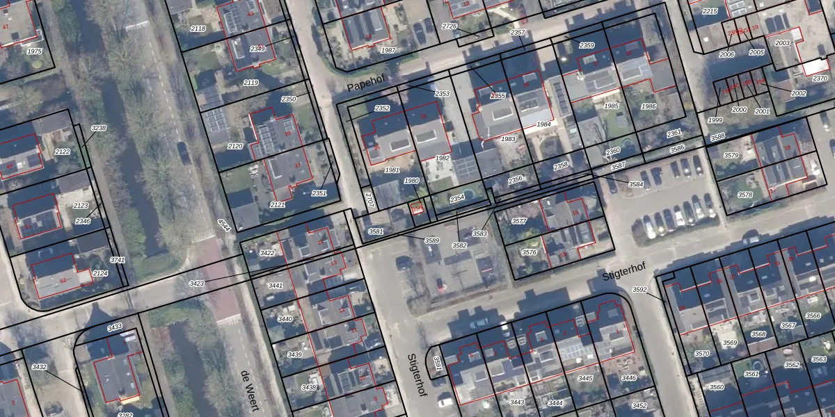 Het perceel waarop Papehof 35-A staat heeft een oppervlakte van 24 m². Dit is een klein perceel. De perceeloppervlakte wordt geregistreerd door het Kadaster. Gedetailleerde informatie over de maten van dit perceel kunt u vinden in het rapport Kadastrale kaart met maatvoering van Papehof 35-A.