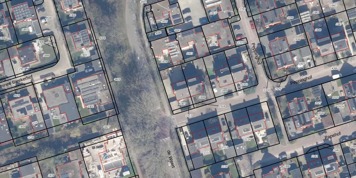 Gebruik de zoekbalk of klik op een perceel voor informatie over de adressen binnen dit perceel.