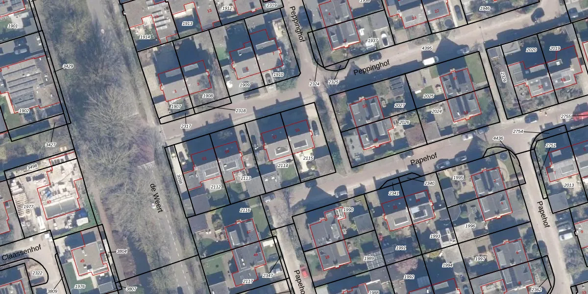 Het perceel waarop Peppinghof 55 staat heeft een oppervlakte van 312 m². Dit is een groot perceel. De perceeloppervlakte wordt geregistreerd door het Kadaster. Gedetailleerde informatie over de maten van dit perceel kunt u vinden in het rapport Kadastrale kaart met maatvoering van Peppinghof 55.