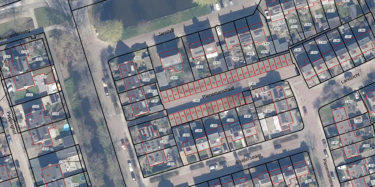 Het perceel waarop Pienemanstraat 56 staat heeft een oppervlakte van 1268 m². Dit is een zeer groot perceel. De perceeloppervlakte wordt geregistreerd door het Kadaster. Gedetailleerde informatie over de maten van dit perceel kunt u vinden in het rapport Kadastrale kaart met maatvoering van Pienemanstraat 56.