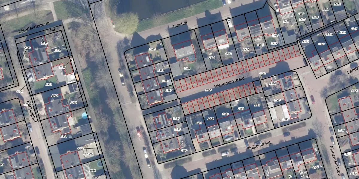 Het perceel waarop Pienemanstraat 64 staat heeft een oppervlakte van 1268 m². Dit is een zeer groot perceel. De perceeloppervlakte wordt geregistreerd door het Kadaster. Gedetailleerde informatie over de maten van dit perceel kunt u vinden in het rapport Kadastrale kaart met maatvoering van Pienemanstraat 64.