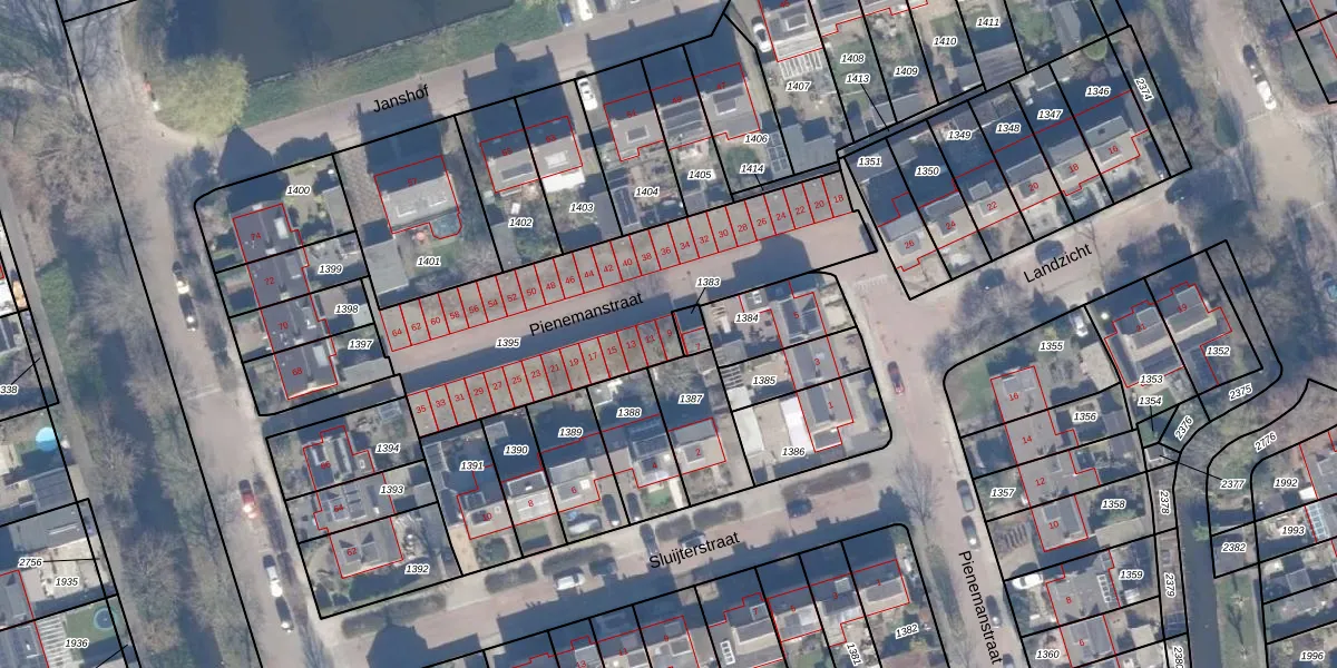 Het perceel waarop Pienemanstraat 9 staat heeft een oppervlakte van 1268 m². Dit is een zeer groot perceel. De perceeloppervlakte wordt geregistreerd door het Kadaster. Gedetailleerde informatie over de maten van dit perceel kunt u vinden in het rapport Kadastrale kaart met maatvoering van Pienemanstraat 9.