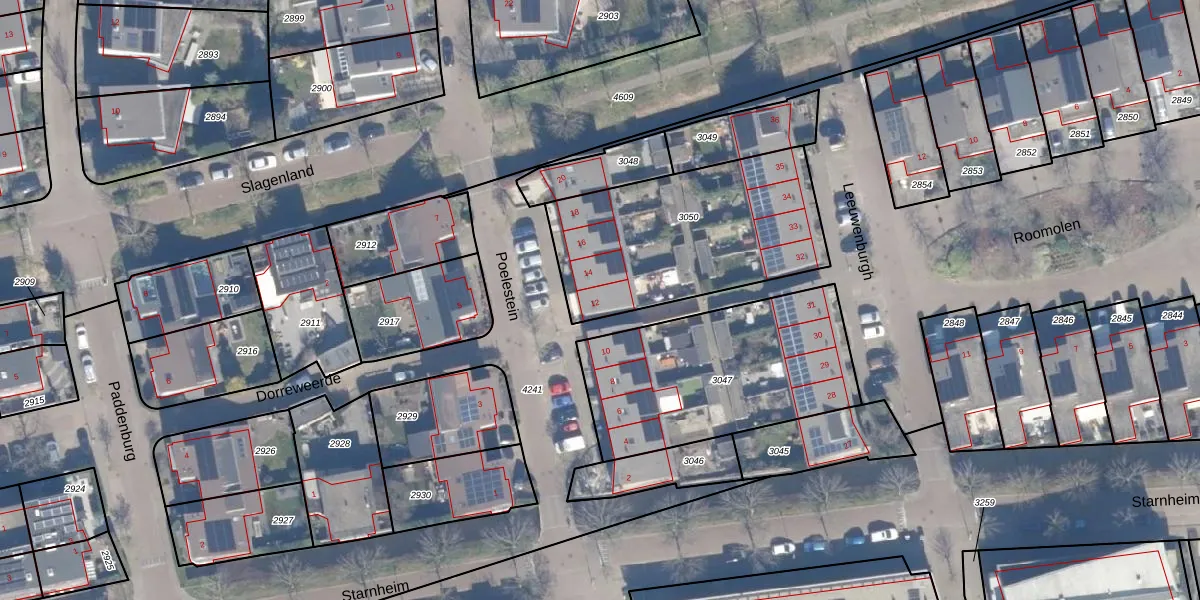Het perceel waarop Poelestein 12 staat heeft een oppervlakte van 910 m². Dit is een groot perceel. De perceeloppervlakte wordt geregistreerd door het Kadaster. Gedetailleerde informatie over de maten van dit perceel kunt u vinden in het rapport Kadastrale kaart met maatvoering van Poelestein 12.