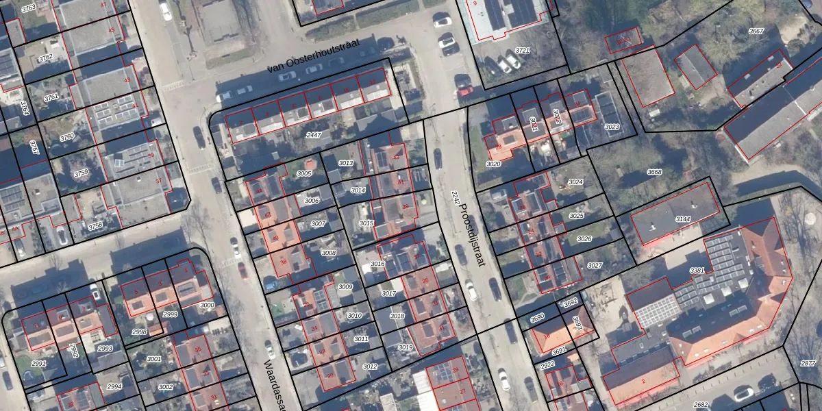 Het perceel waarop Proostdijstraat 39 staat heeft een oppervlakte van 221 m². Dit is een middelgroot perceel. De perceeloppervlakte wordt geregistreerd door het Kadaster. Gedetailleerde informatie over de maten van dit perceel kunt u vinden in het rapport Kadastrale kaart met maatvoering van Proostdijstraat 39.