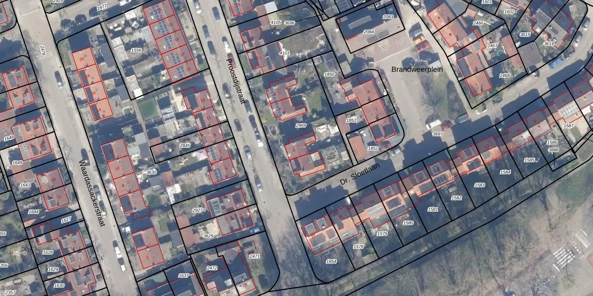 Het perceel waarop Proostdijstraat 4 staat heeft een oppervlakte van 965 m². Dit is een groot perceel. De perceeloppervlakte wordt geregistreerd door het Kadaster. Gedetailleerde informatie over de maten van dit perceel kunt u vinden in het rapport Kadastrale kaart met maatvoering van Proostdijstraat 4.