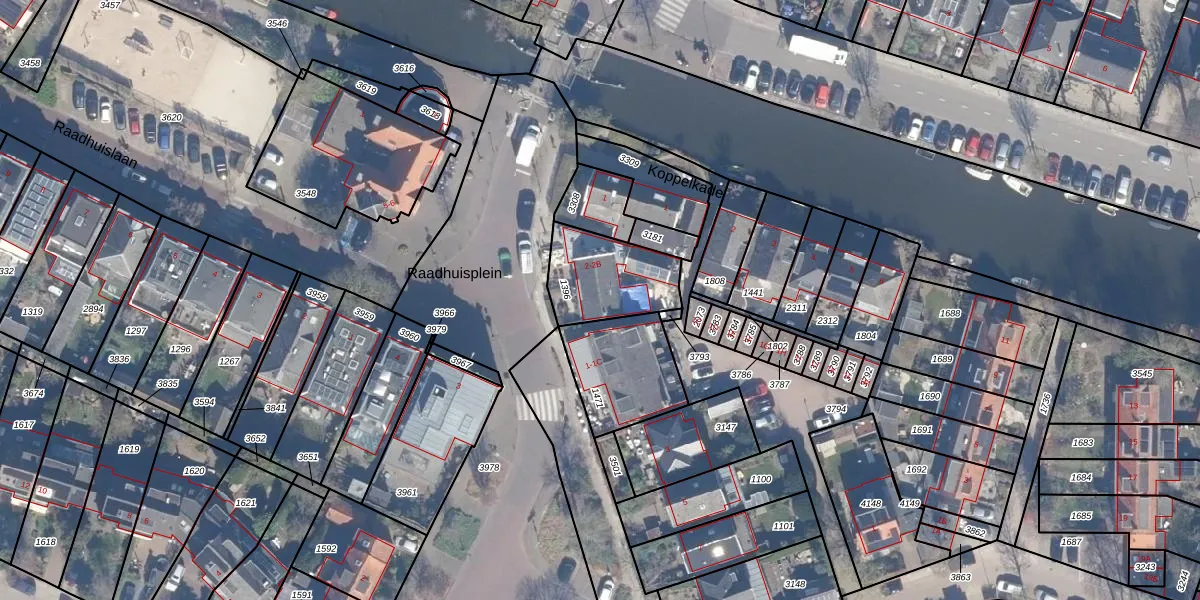 Het perceel waarop Raadhuisplein 2-A staat heeft een oppervlakte van 283 m². Dit is een middelgroot perceel. De perceeloppervlakte wordt geregistreerd door het Kadaster. Gedetailleerde informatie over de maten van dit perceel kunt u vinden in het rapport Kadastrale kaart met maatvoering van Raadhuisplein 2-A.