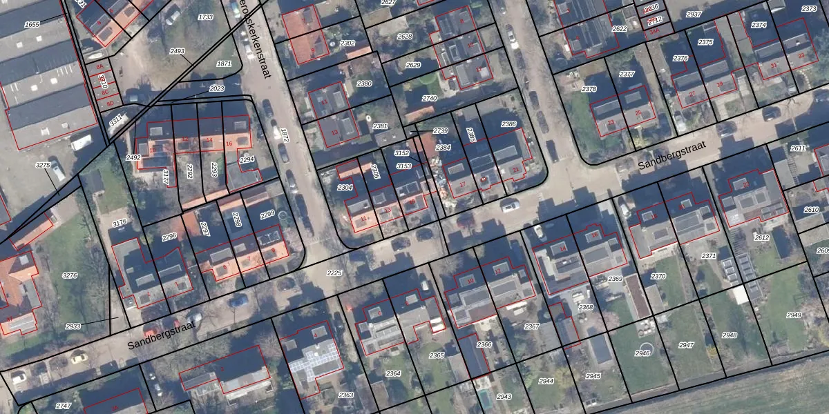 Het perceel waarop Sandbergstraat 15 staat heeft een oppervlakte van 171 m². Dit is een middelgroot perceel. De perceeloppervlakte wordt geregistreerd door het Kadaster. Gedetailleerde informatie over de maten van dit perceel kunt u vinden in het rapport Kadastrale kaart met maatvoering van Sandbergstraat 15.
