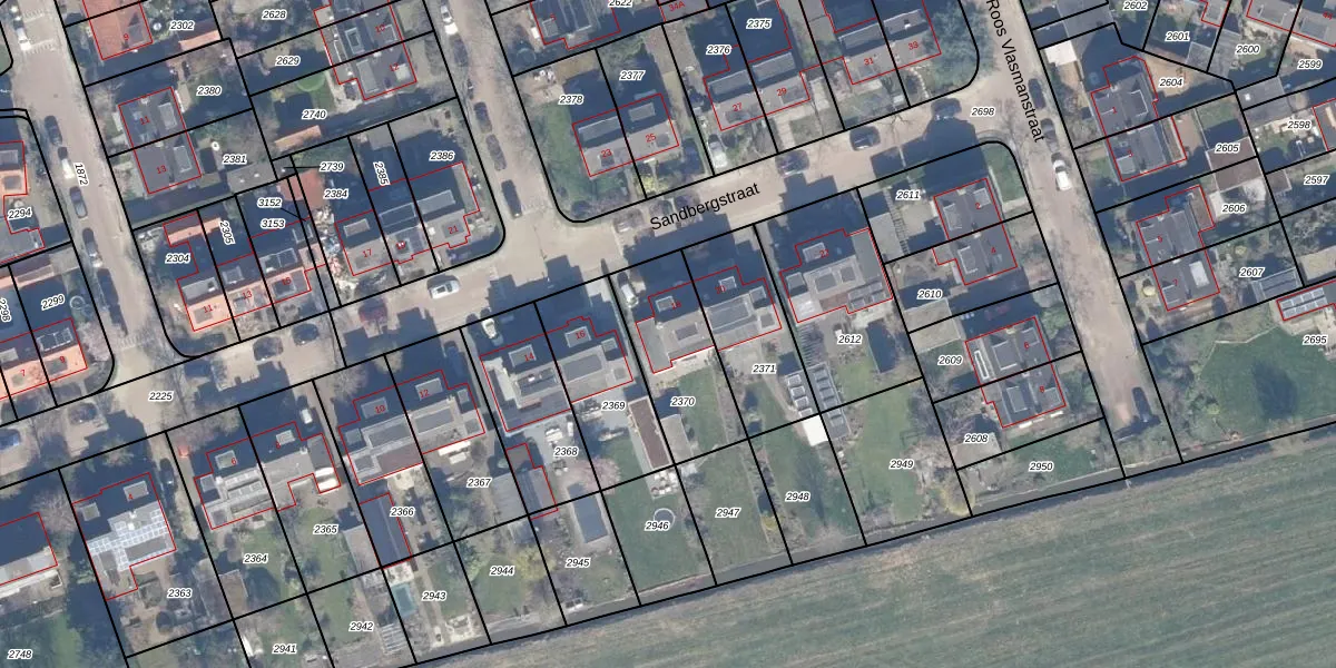 Gebruik de zoekbalk of klik op een perceel voor informatie over de adressen binnen dit perceel.