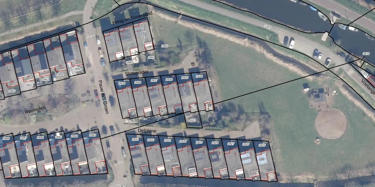 Gebruik de zoekbalk of klik op een perceel voor informatie over de adressen binnen dit perceel.