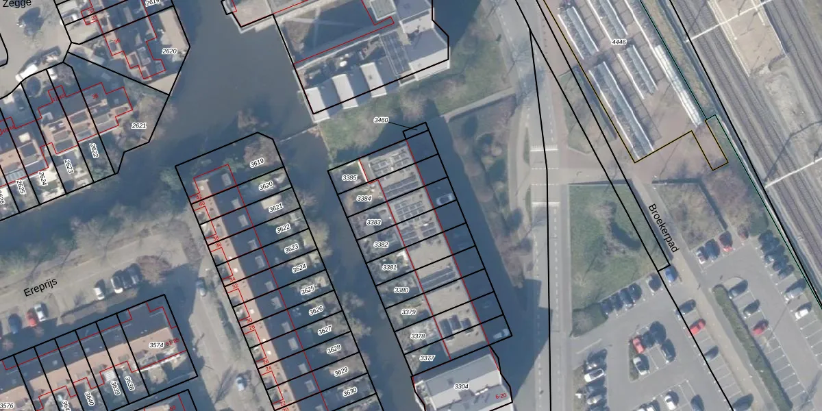 Gebruik de zoekbalk of klik op een perceel voor informatie over de adressen binnen dit perceel.