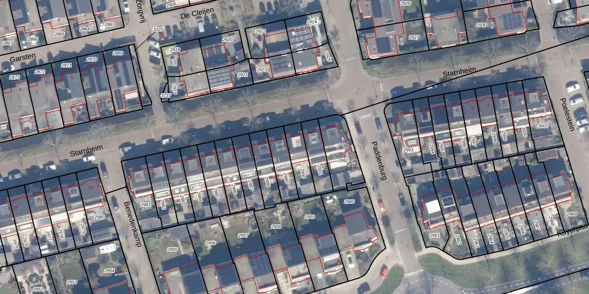 Gebruik de zoekbalk of klik op een perceel voor informatie over de adressen binnen dit perceel.