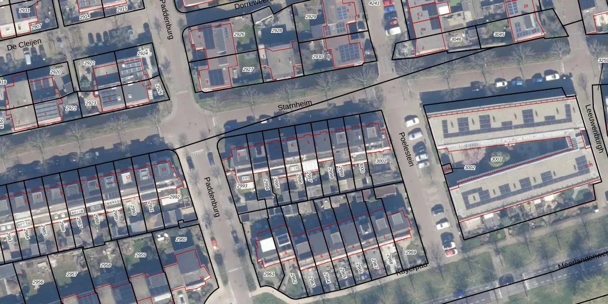 Gebruik de zoekbalk of klik op een perceel voor informatie over de adressen binnen dit perceel.
