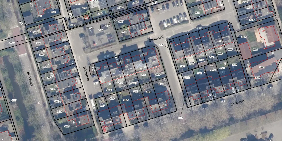 Gebruik de zoekbalk of klik op een perceel voor informatie over de adressen binnen dit perceel.