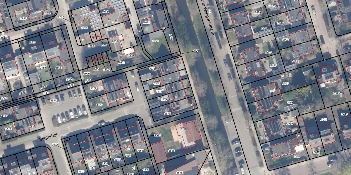 Gebruik de zoekbalk of klik op een perceel voor informatie over de adressen binnen dit perceel.