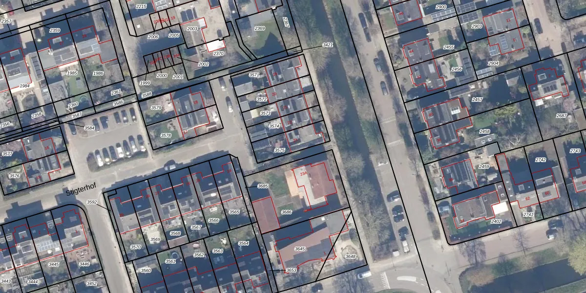 Het perceel waarop Stigterhof 23 staat heeft een oppervlakte van 192 m². Dit is een middelgroot perceel. De perceeloppervlakte wordt geregistreerd door het Kadaster. Gedetailleerde informatie over de maten van dit perceel kunt u vinden in het rapport Kadastrale kaart met maatvoering van Stigterhof 23.