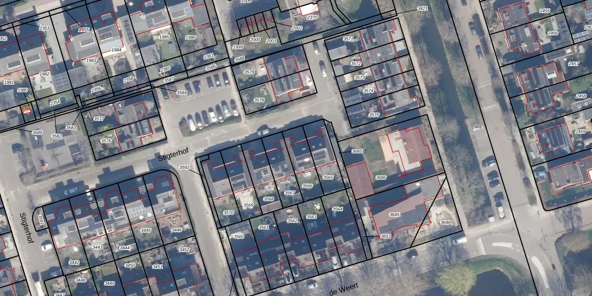Het perceel waarop Stigterhof 25 staat heeft een oppervlakte van 181 m². Dit is een middelgroot perceel. De perceeloppervlakte wordt geregistreerd door het Kadaster. Gedetailleerde informatie over de maten van dit perceel kunt u vinden in het rapport Kadastrale kaart met maatvoering van Stigterhof 25.