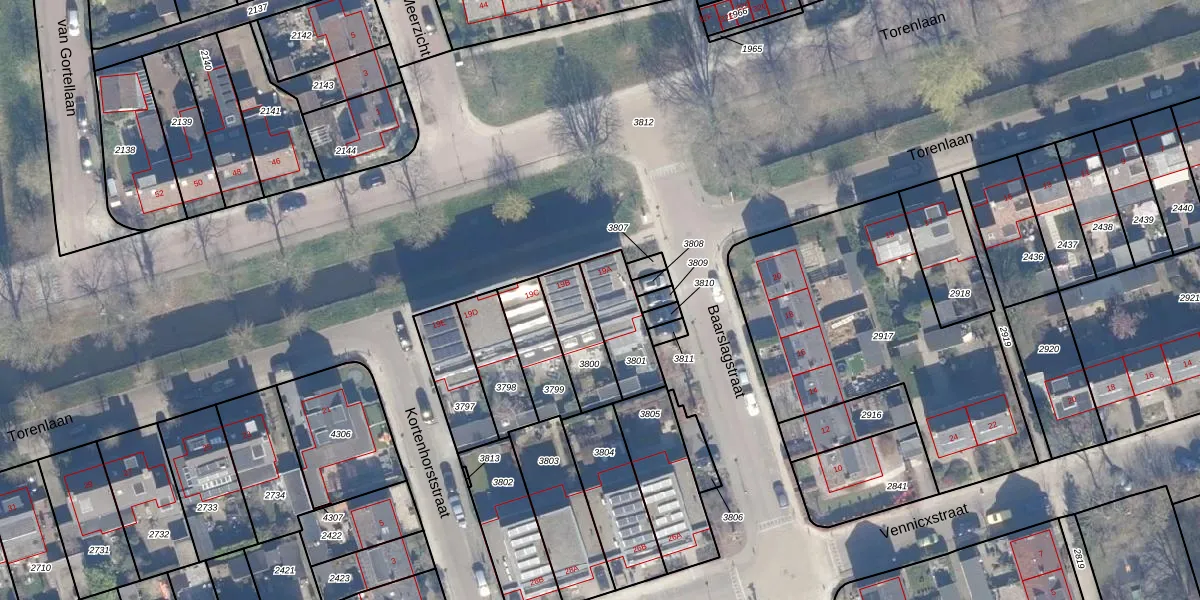 Torenlaan 19-A is gelegen op kadastraal perceel ACD00B3801. Deze kadastrale aanduiding is uniek en wordt gebruikt door het Kadaster om eigendomsrechten en andere zakelijke rechten vast te leggen. Het perceel maakt onderdeel uit van de kadastrale gemeente Abcoude.