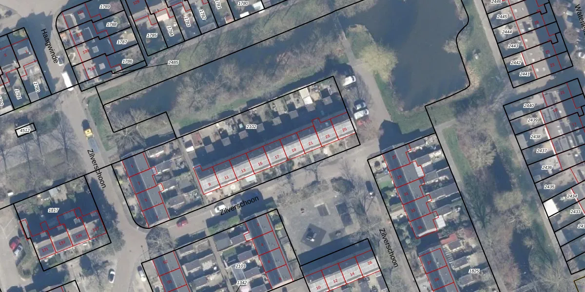 Het perceel waarop Zilverschoon 19 staat heeft een oppervlakte van 2047 m². Dit is een zeer groot perceel. De perceeloppervlakte wordt geregistreerd door het Kadaster. Gedetailleerde informatie over de maten van dit perceel kunt u vinden in het rapport Kadastrale kaart met maatvoering van Zilverschoon 19.