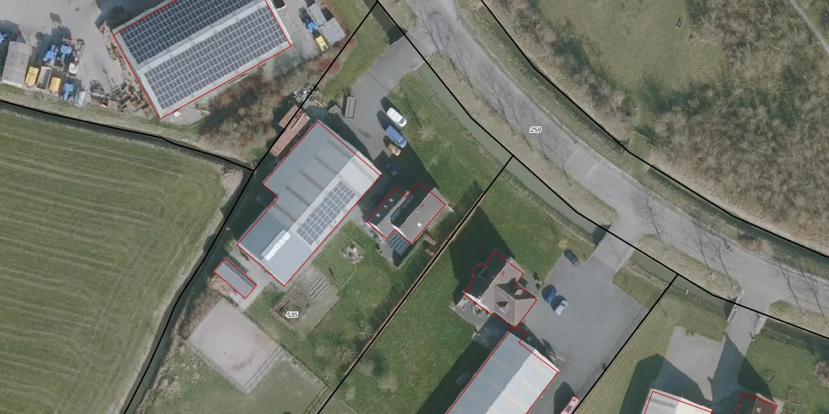 Het perceel waarop het adres ligt is TJU00-F-535. De afkorting 'TJU00' staat voor kadastrale gemeente Tjum. Het perceel is 7000 m² groot. Dat is kleiner dan de gemiddelde perceeloppervlakte in Tjum, dat op 1,2 ha ligt. De grootste perceeloppervlakte in de kadastrale gemeente is 33,0 ha. De kleinste oppervlakte bedraagt 1 m². Op het perceel bevinden zich geen andere adressen. De huidige grenzen van het perceel zijn digitaal in de Basisregistratie Kadaster (BRK) geregistreerd op 06-05-2004.