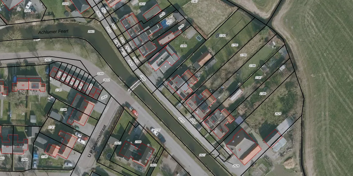Het adres is gelegen op perceel 2791 in de sectie C en de kadastrale gemeente Tjum. De kadastrale aanduiding is aldus TJU00-C-2791. De gemiddelde perceelgrootte in Tjum is 1,2 ha. Dit perceel is kleiner: de perceeloppervlakte bedraagt 583 m². De grootste perceeloppervlakte in de kadastrale gemeente is 33,0 ha. De kleinste oppervlakte bedraagt 1 m². Op het perceel bevinden zich geen andere adressen. De huidige grenzen van het perceel zijn digitaal in de Basisregistratie Kadaster (BRK) geregistreerd op 15-01-2007.
