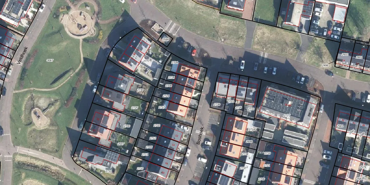 Gebruik de zoekbalk of klik op een perceel voor informatie over de adressen binnen dit perceel.