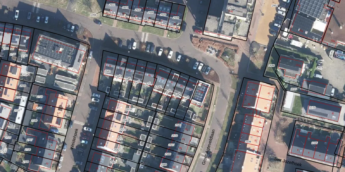 Groot Agteveldlaan 41 is gelegen op kadastraal perceel STB00C2574. Deze kadastrale aanduiding is uniek en wordt gebruikt door het Kadaster om eigendomsrechten en andere zakelijke rechten vast te leggen. Het perceel maakt onderdeel uit van de kadastrale gemeente Stoutenburg.