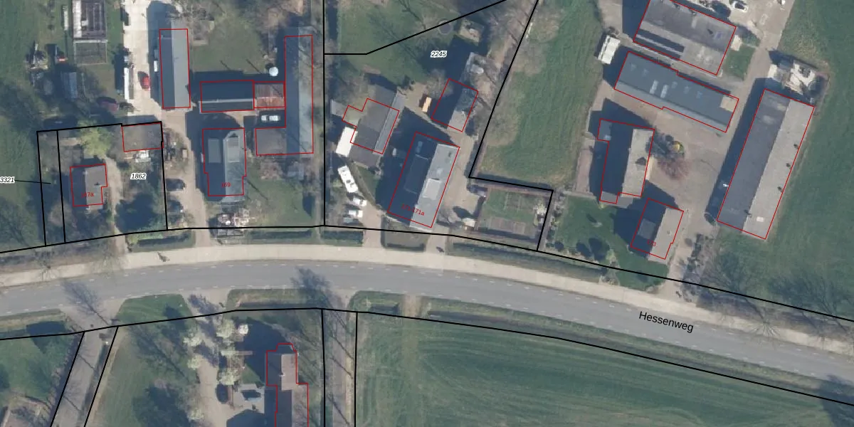Hessenweg 171 is gelegen op kadastraal perceel STB00B2245. Deze kadastrale aanduiding is uniek en wordt gebruikt door het Kadaster om eigendomsrechten en andere zakelijke rechten vast te leggen. Het perceel maakt onderdeel uit van de kadastrale gemeente Stoutenburg.