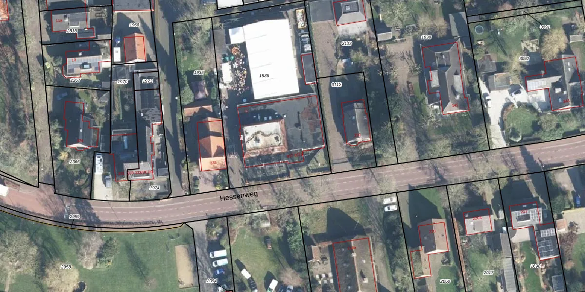 Het perceel waarop Hessenweg 337 staat heeft een oppervlakte van 2015 m². Dit is een zeer groot perceel. De perceeloppervlakte wordt geregistreerd door het Kadaster. Gedetailleerde informatie over de maten van dit perceel kunt u vinden in het rapport Kadastrale kaart met maatvoering van Hessenweg 337.