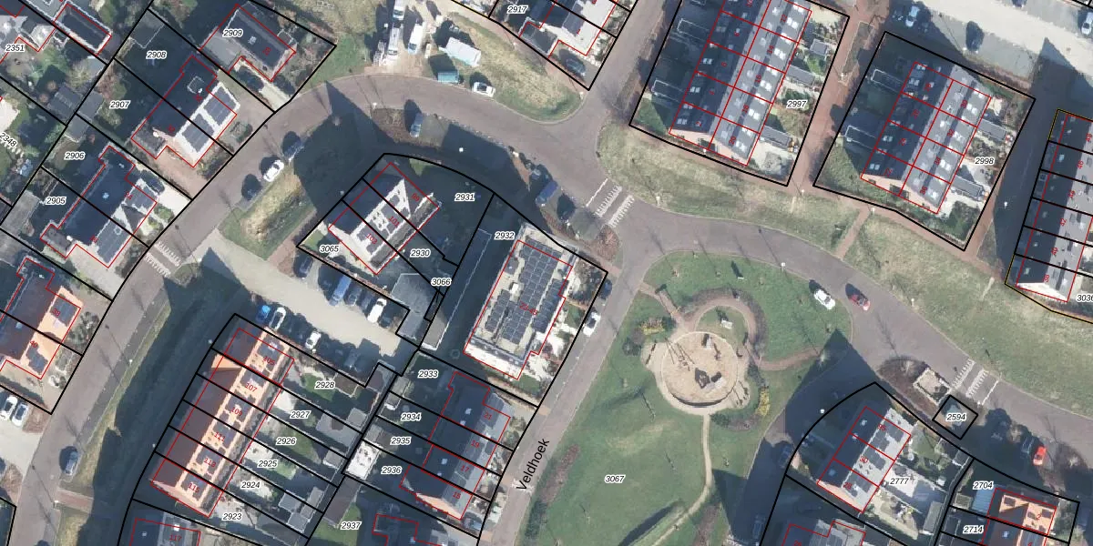 Veldhoek 45 is gelegen op kadastraal perceel STB00C2932. Deze kadastrale aanduiding is uniek en wordt gebruikt door het Kadaster om eigendomsrechten en andere zakelijke rechten vast te leggen. Het perceel maakt onderdeel uit van de kadastrale gemeente Stoutenburg.