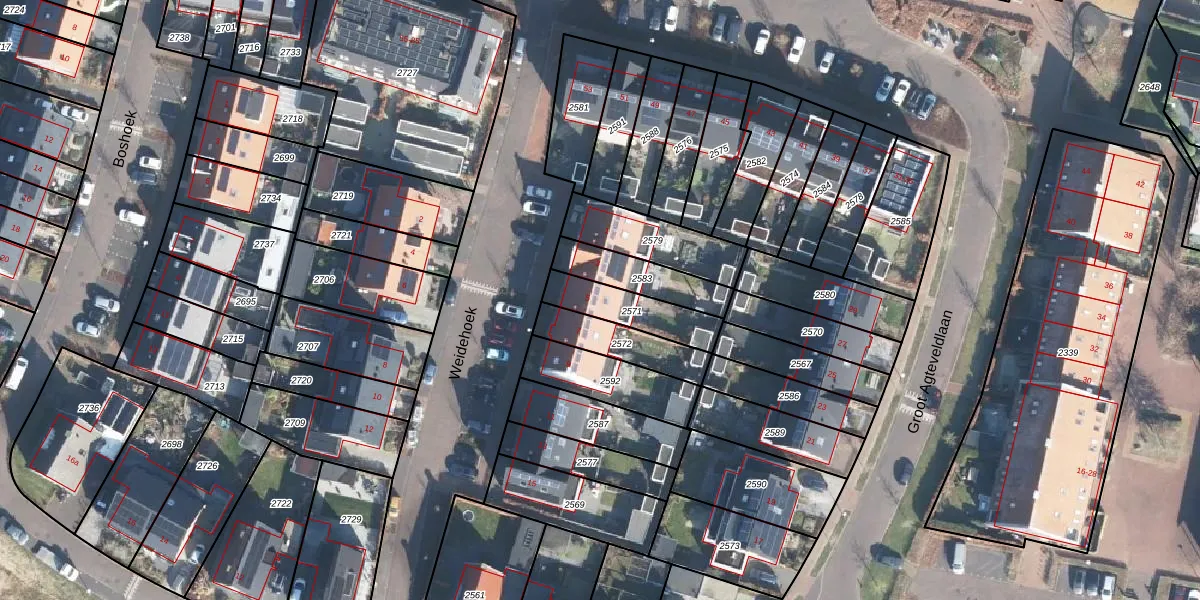 Het perceel waarop Weidehoek 5 staat heeft een oppervlakte van 174 m². Dit is een middelgroot perceel. De perceeloppervlakte wordt geregistreerd door het Kadaster. Gedetailleerde informatie over de maten van dit perceel kunt u vinden in het rapport Kadastrale kaart met maatvoering van Weidehoek 5.