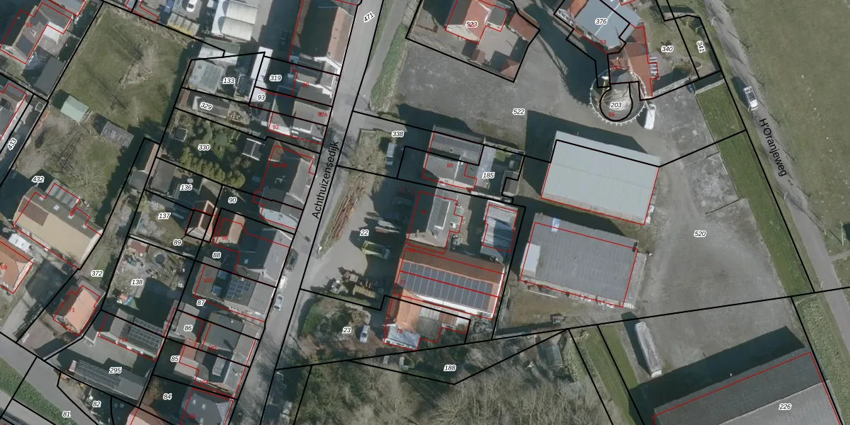 Het perceel waarop Achthuizensedijk 67 staat heeft een oppervlakte van 1290 m². Dit is een zeer groot perceel. De perceeloppervlakte wordt geregistreerd door het Kadaster. Gedetailleerde informatie over de maten van dit perceel kunt u vinden in het rapport Kadastrale kaart met maatvoering van Achthuizensedijk 67.