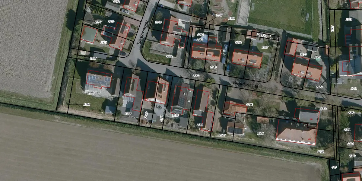 Het perceel waarop Beatrixstraat 3-a staat heeft een oppervlakte van 394 m². Dit is een groot perceel. De perceeloppervlakte wordt geregistreerd door het Kadaster. Gedetailleerde informatie over de maten van dit perceel kunt u vinden in het rapport Kadastrale kaart met maatvoering van Beatrixstraat 3-a.