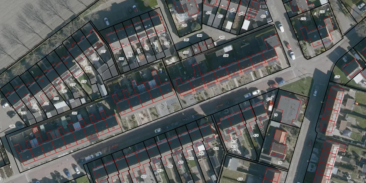 Het perceel waarop Bloemstraat 16 staat heeft een oppervlakte van 1590 m². Dit is een zeer groot perceel. De perceeloppervlakte wordt geregistreerd door het Kadaster. Gedetailleerde informatie over de maten van dit perceel kunt u vinden in het rapport Kadastrale kaart met maatvoering van Bloemstraat 16.