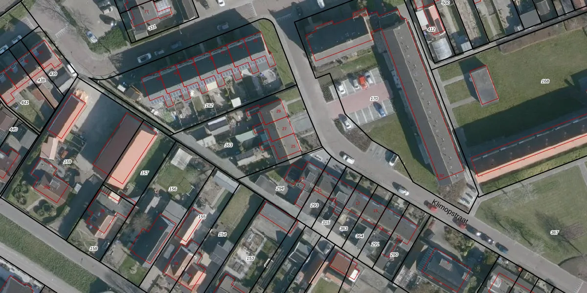 Klimopstraat 25 is gelegen op kadastraal perceel OFK00G163. Deze kadastrale aanduiding is uniek en wordt gebruikt door het Kadaster om eigendomsrechten en andere zakelijke rechten vast te leggen. Het perceel maakt onderdeel uit van de kadastrale gemeente Oostflakkee.